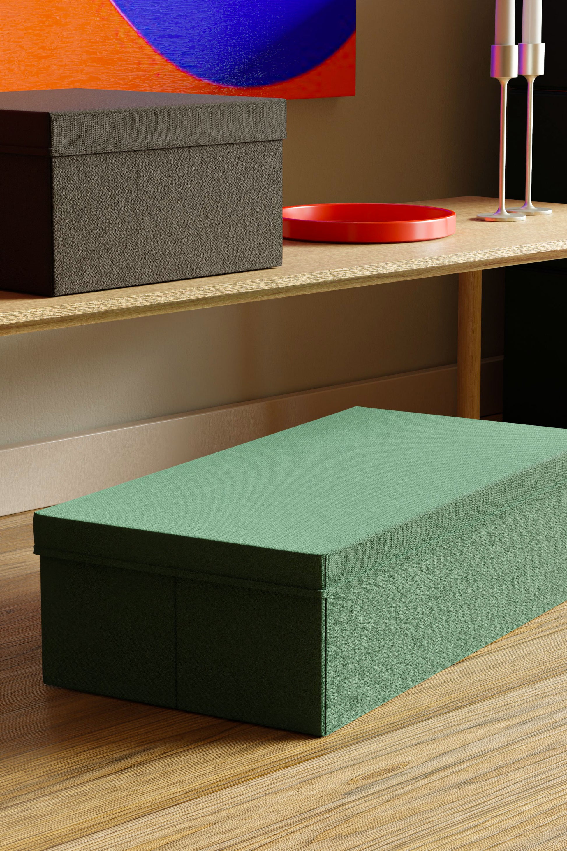 Large - 60 x 15 x 30 cm: Half the size of an extra large box. A perfect size for keeping under the bed, or on top of closets and shelves. A great size for storing clothes or other large articles.