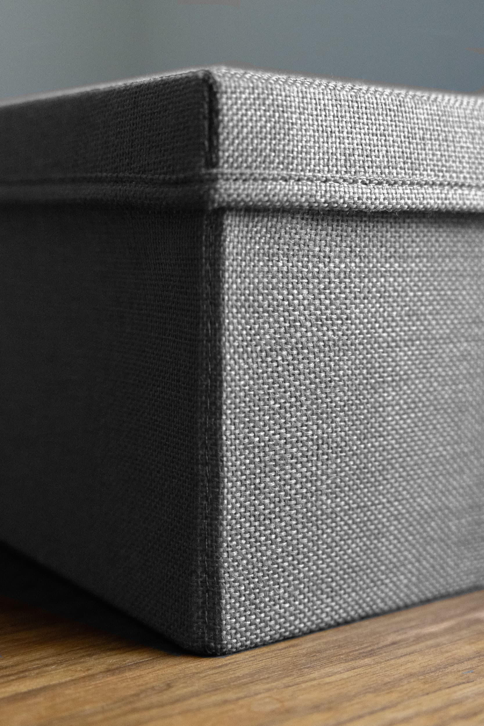 It is made of a hard cardboard covered in a tactile and soft Oxford™ fabric.